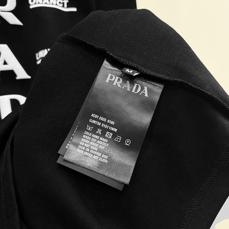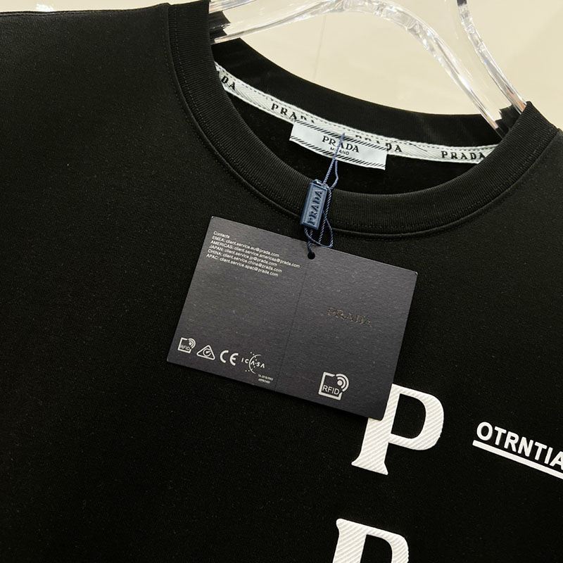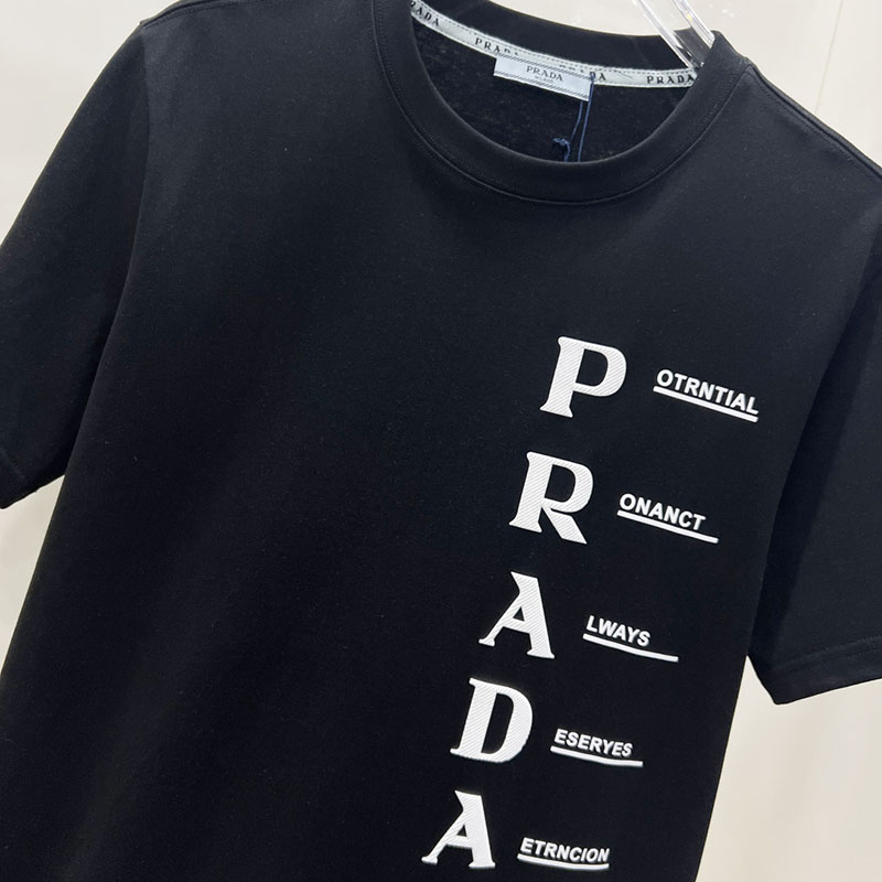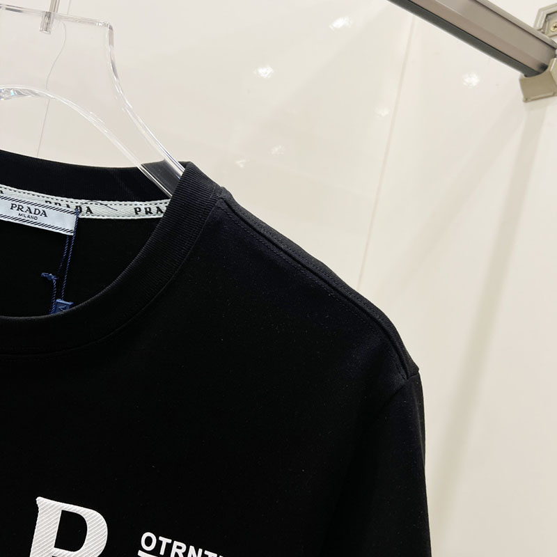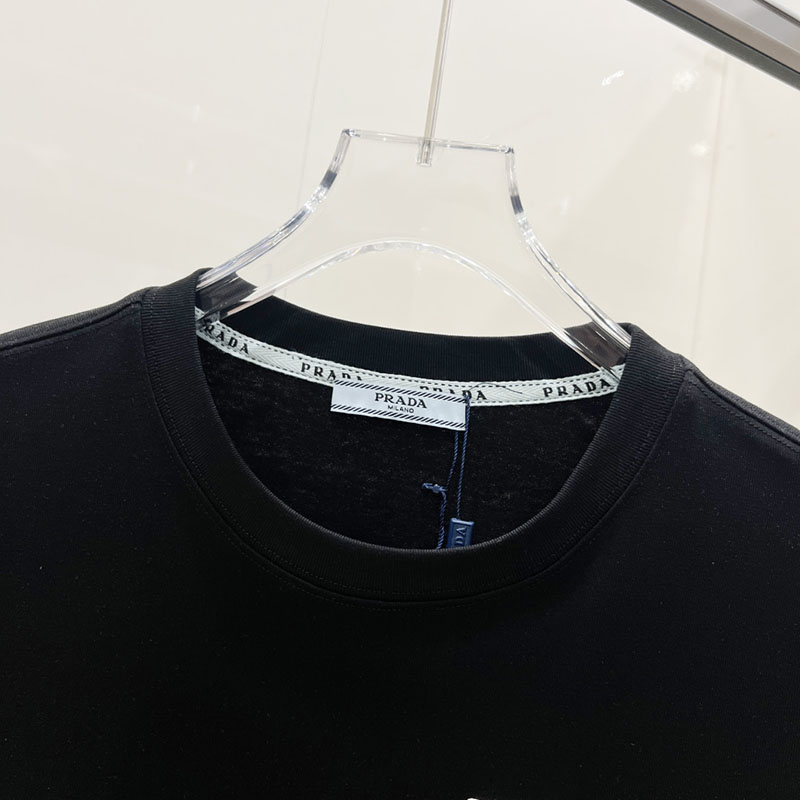 最高級プラダスーパーコピー プラダTシャツコピー Tシャツ・メンズ・レディース兼用 2522421 ブラック 黒 N品 プラダ tシャツ レディース