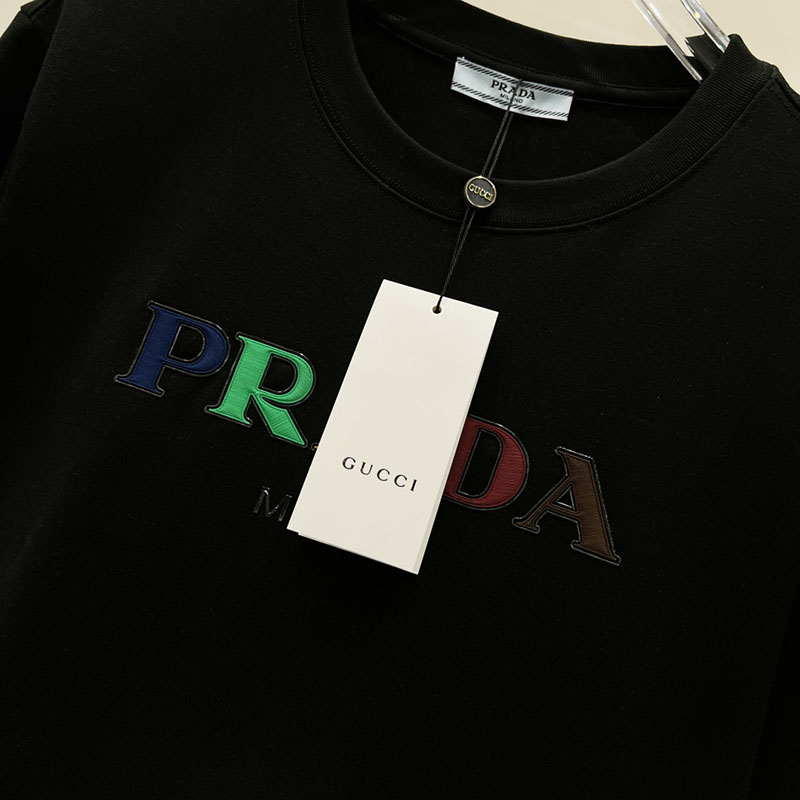 最高級プラダスーパーコピー プラダTシャツコピー Tシャツ・メンズ・レディース兼用 2522425 ブラック 黒 N品 プラダ tシャツ レディース