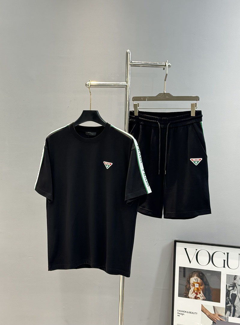 最高級プラダスーパーコピー プラダTシャツコピー Tシャツ セットアップ 2522437 ブラック 黒 N品 プラダ tシャツ アウトレット