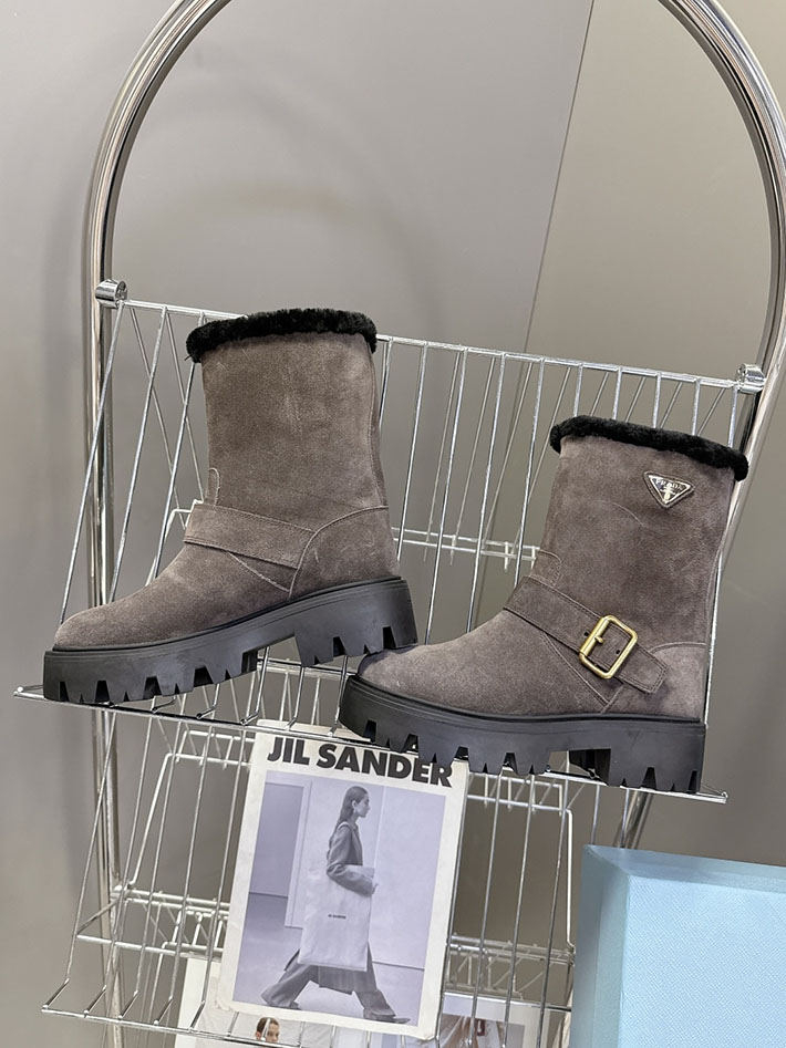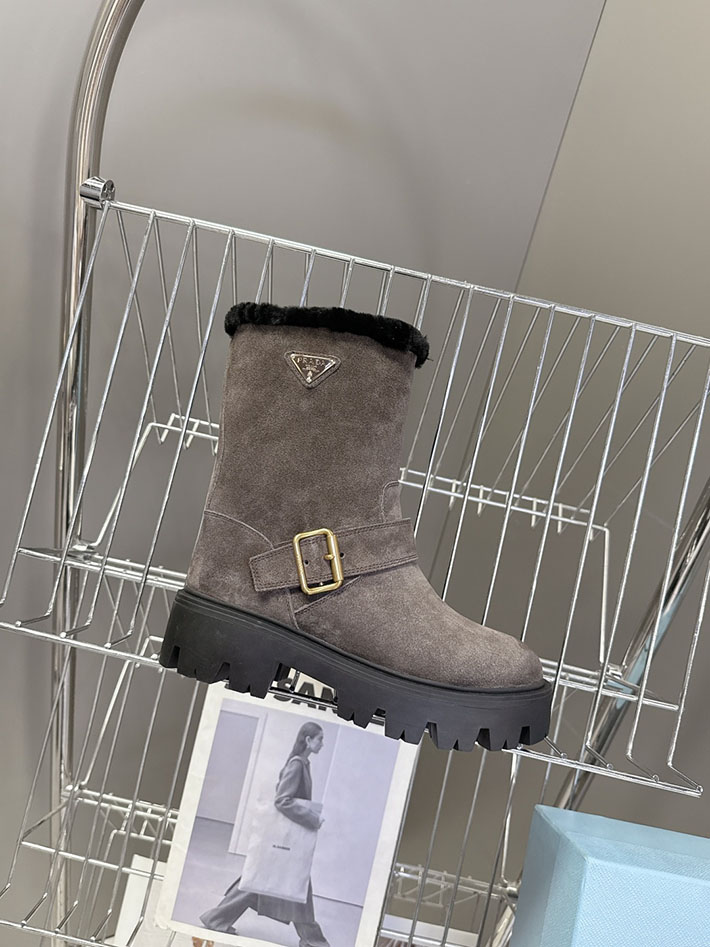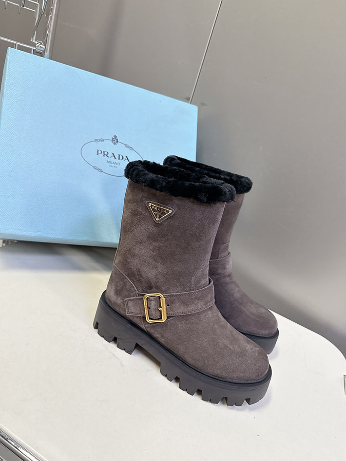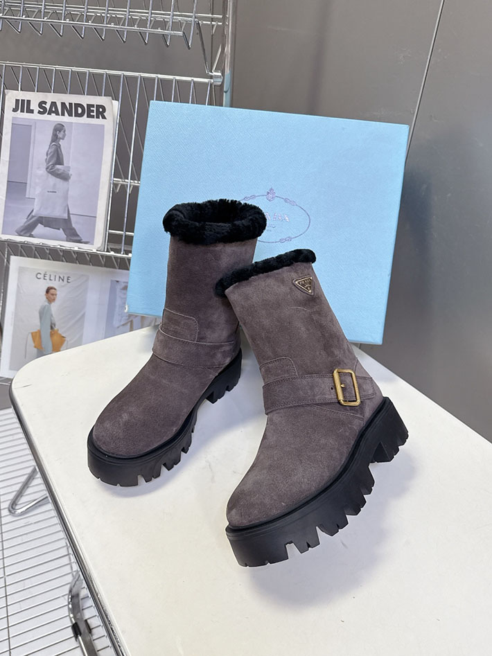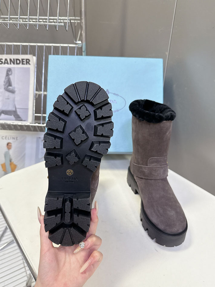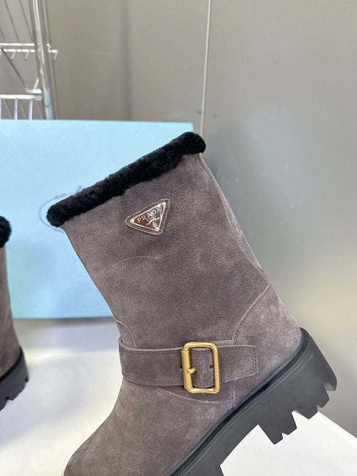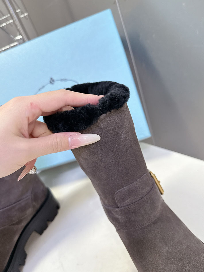 最高級プラダスーパーコピー PRADA スエード ファー付きブーツ 厚底ムートンブーツ 2627089 プラダ ブーツ アウトレット