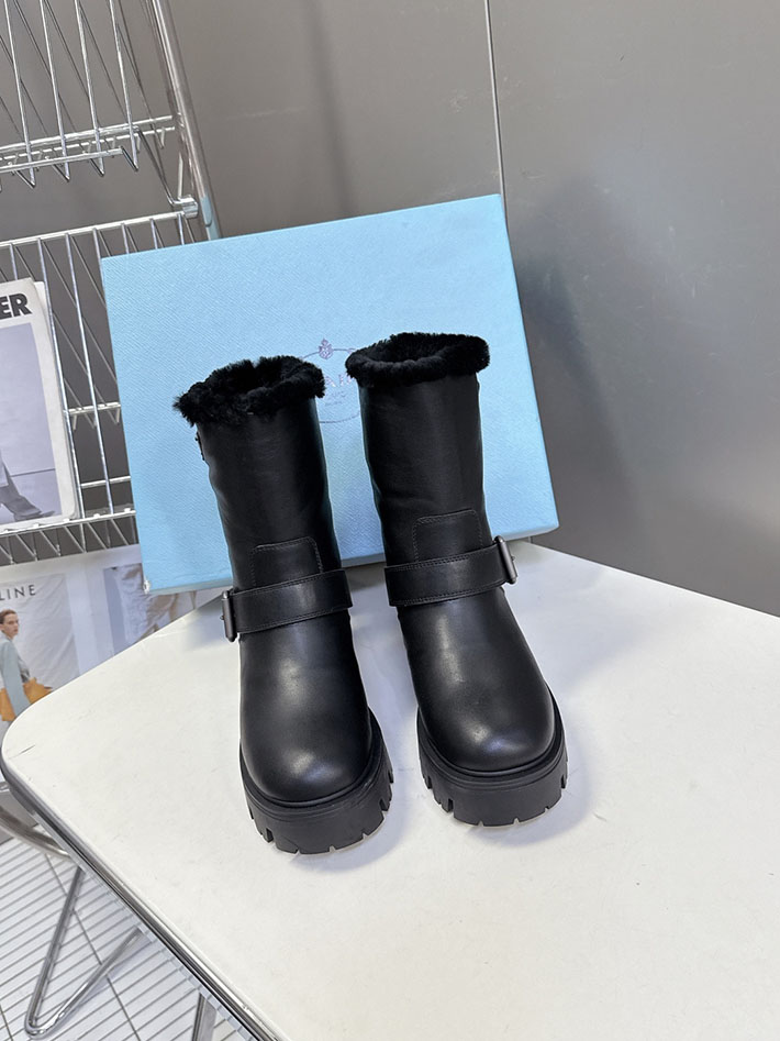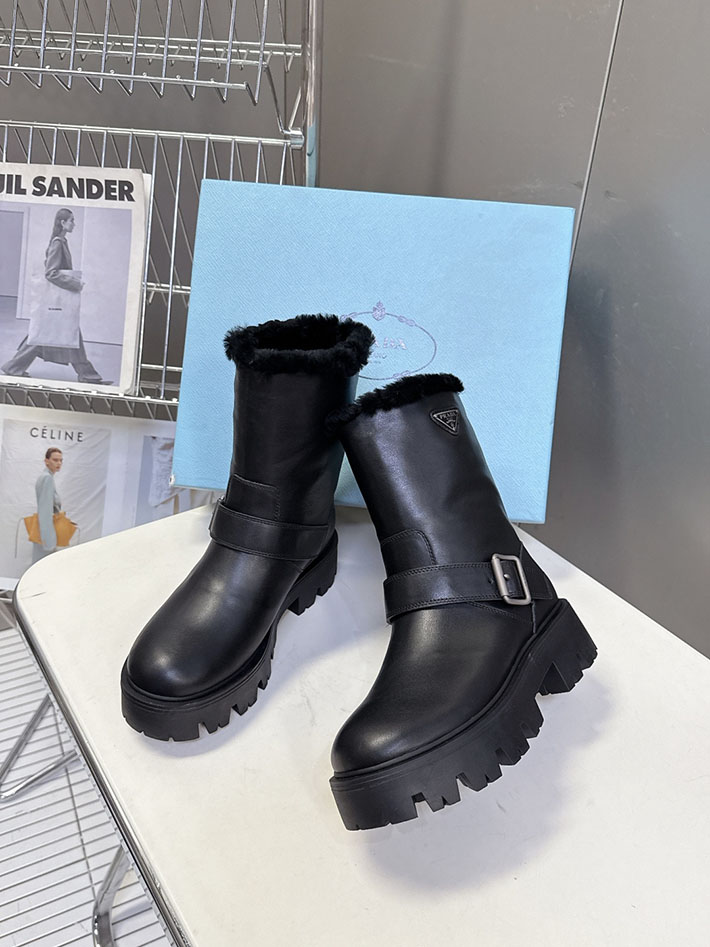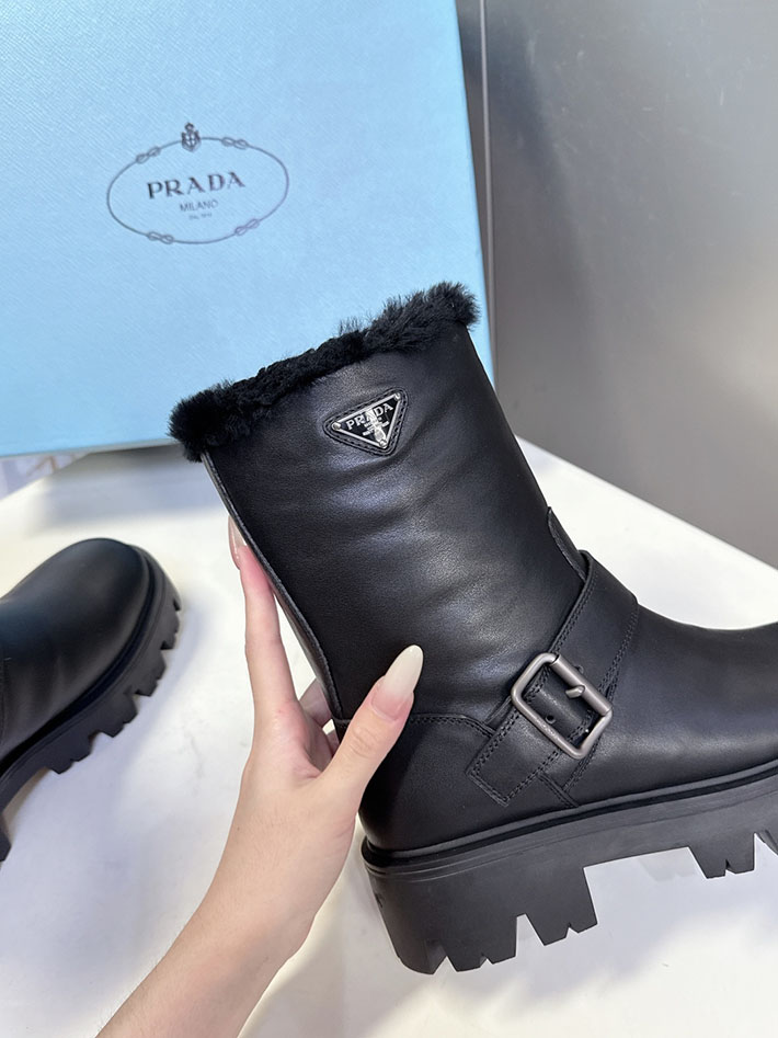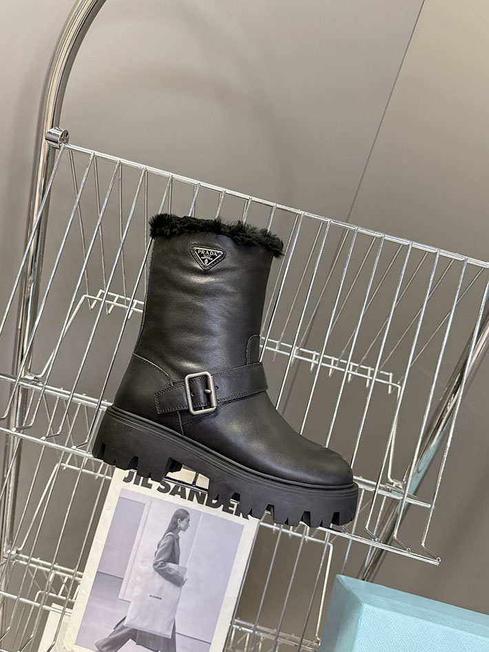 最高級プラダスーパーコピー PRADA スエード ファー付きブーツ 厚底ムートンブーツ 2627091 プラダ ムートンブーツ