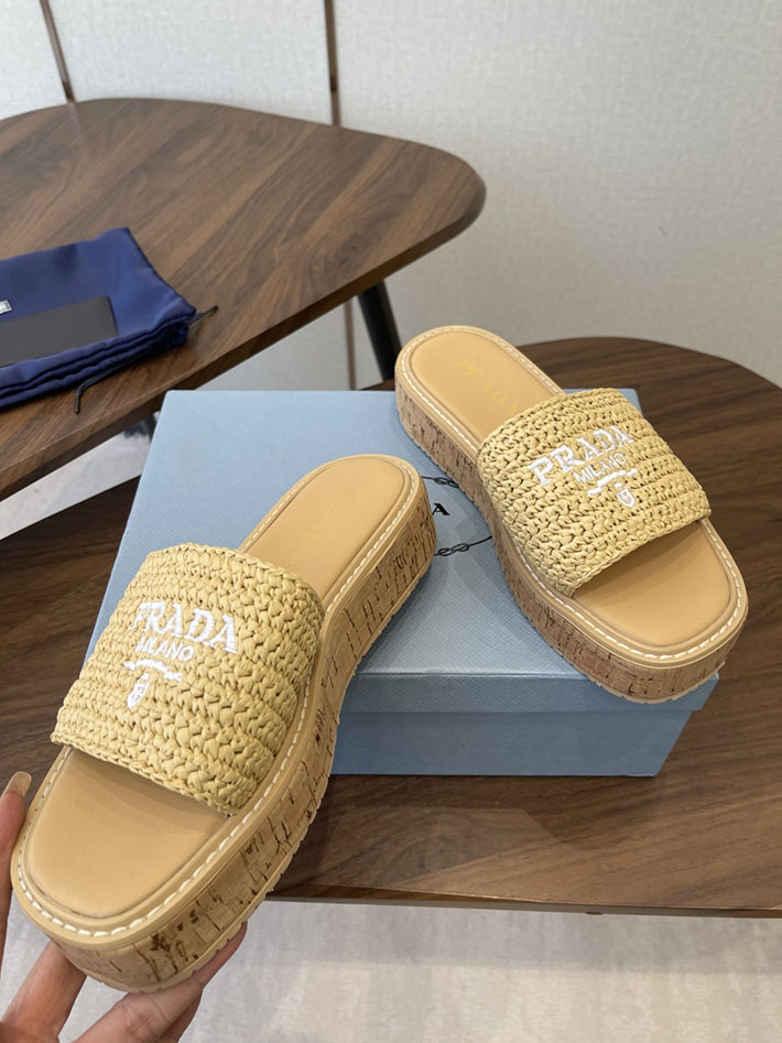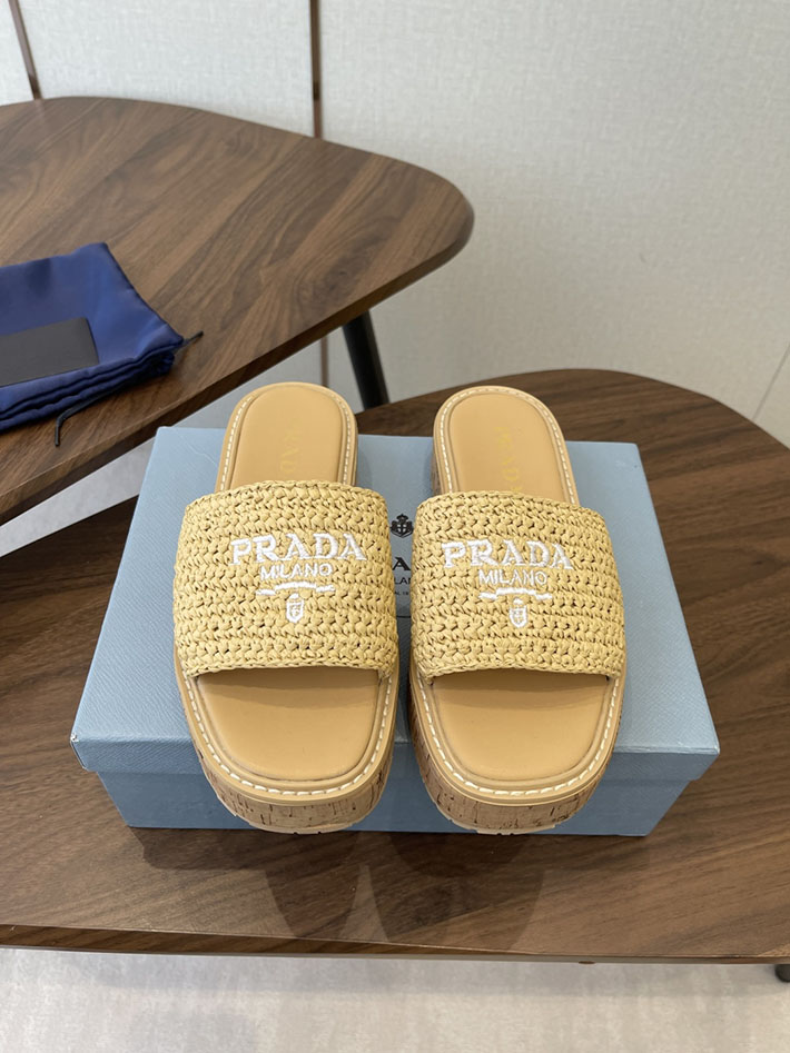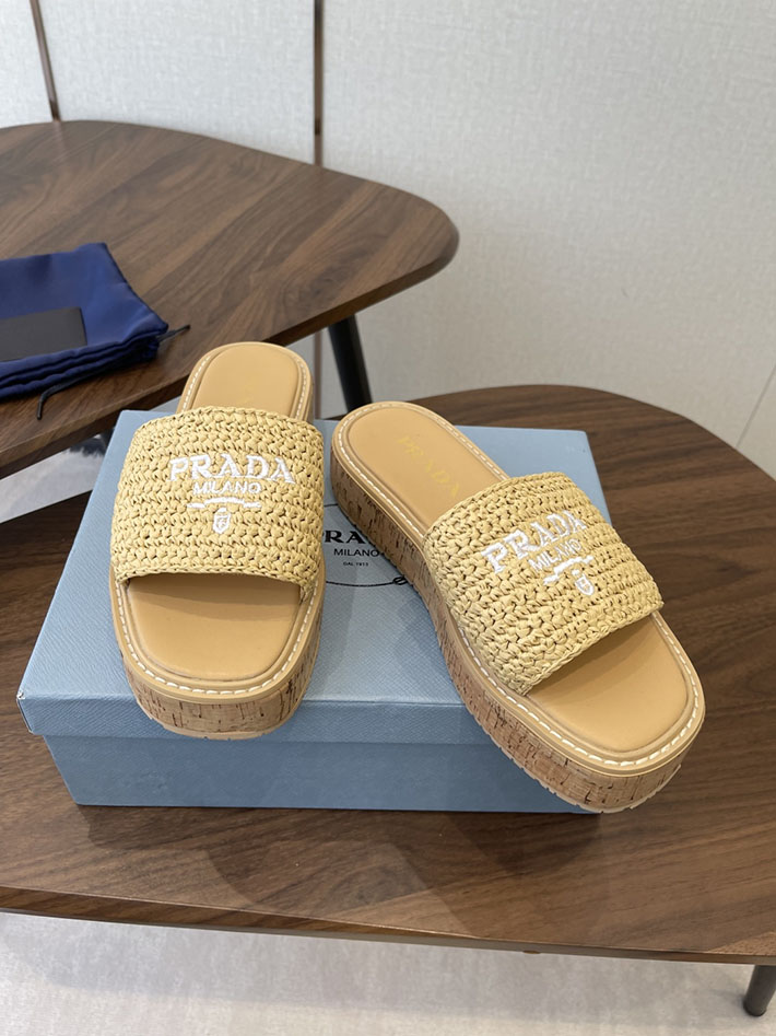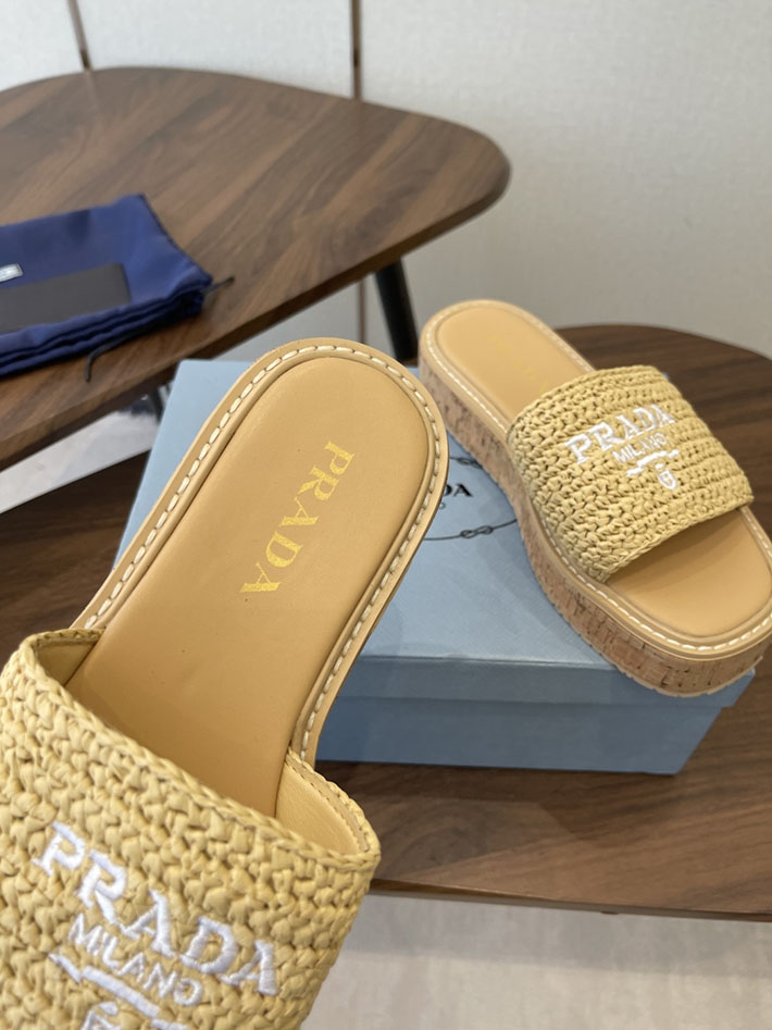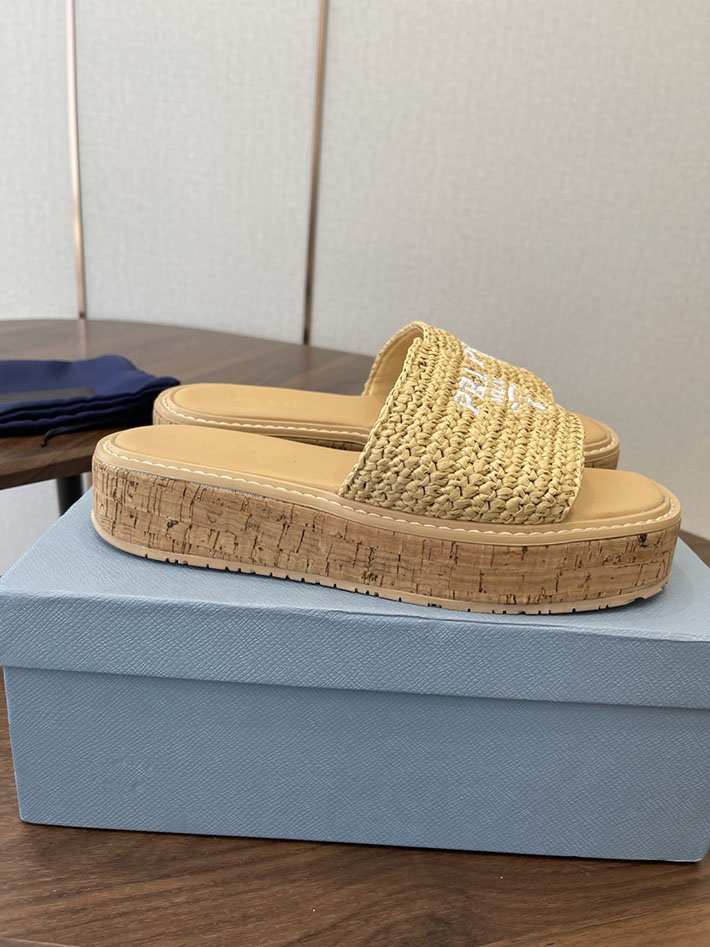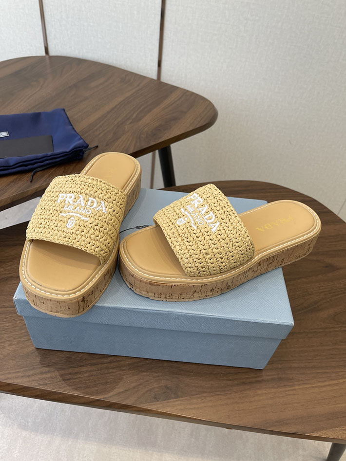 最高級プラダスーパーコピー PRADA 2026年春夏 新作 ラフィア風 厚底 プラットフォーム 4cmヒール 2630612 プラダ サンダル 厚底