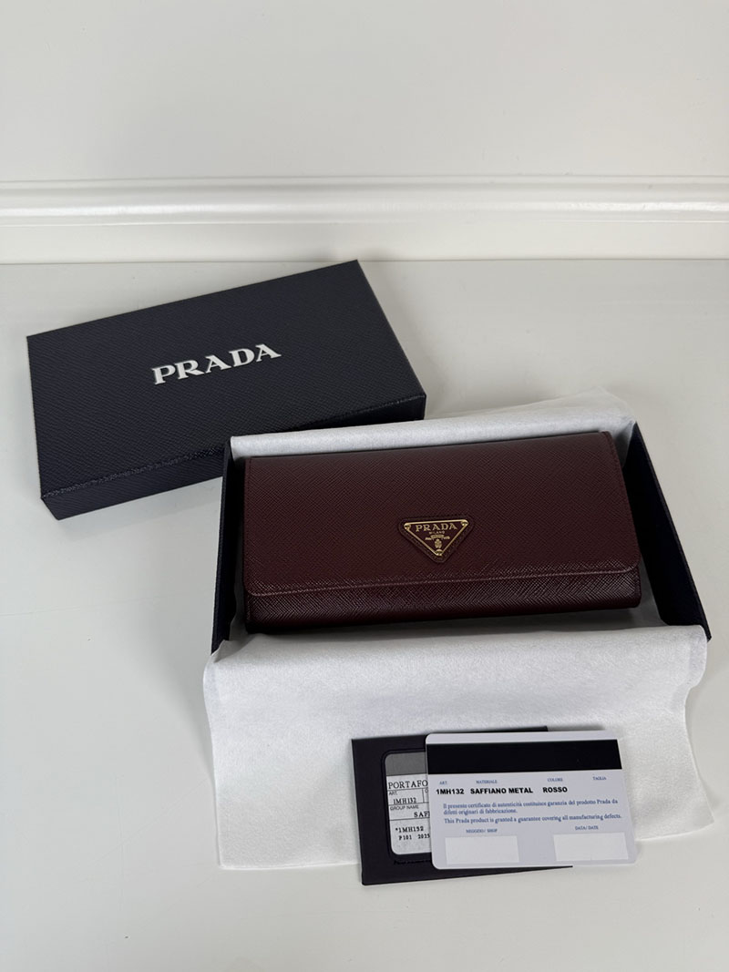 最高級プラダスーパーコピー PRADA サフィアーノトライアングル 長財布 ボルドー 1MH132_QHH_F0007 プラダ 財布 アウトレット