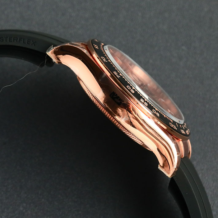 バーゼルワールド2011で発表された116515LN。数々の時計雑誌の表紙を飾っていたモデルになるので、目にしたことがある人も多いのではないでしょうか。K18エバーローズゴールド製のケースに、モノブロック(一体構造)のブラックセラクロムベゼルを採用。上質なセラミックを使用することで耐蝕性、耐傷性に優れ、色褪せを防ぐことに成功しています。また、ベゼルの目盛りにピンクゴールドの微粒子層を蒸着し、PVD加工することで高い視認性を実現しました。