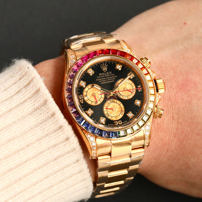商品名:コスモグラフ デイトナ 116598RBOW ブラック/ゴールド/8PD文字盤 腕時計 メンズ
