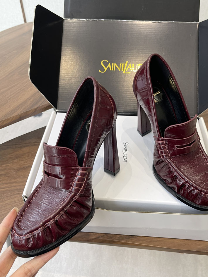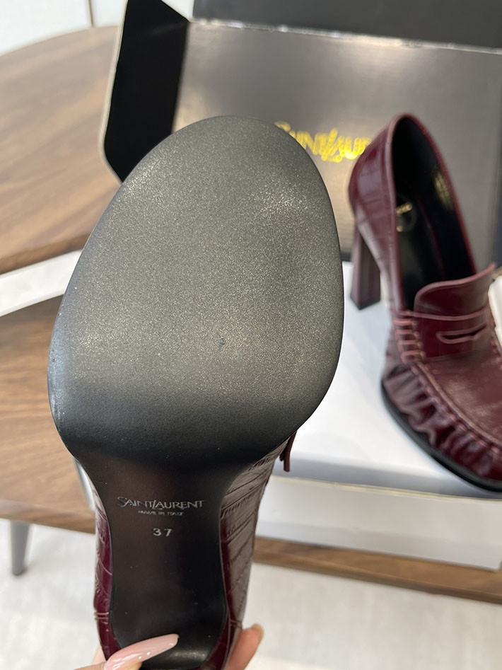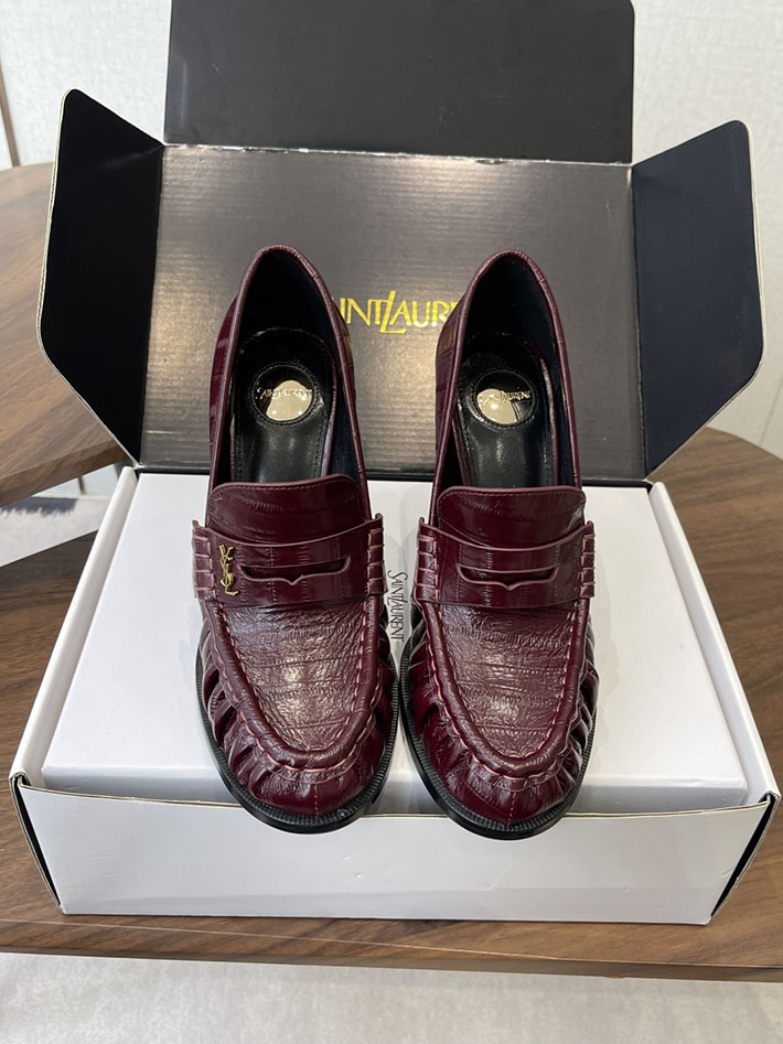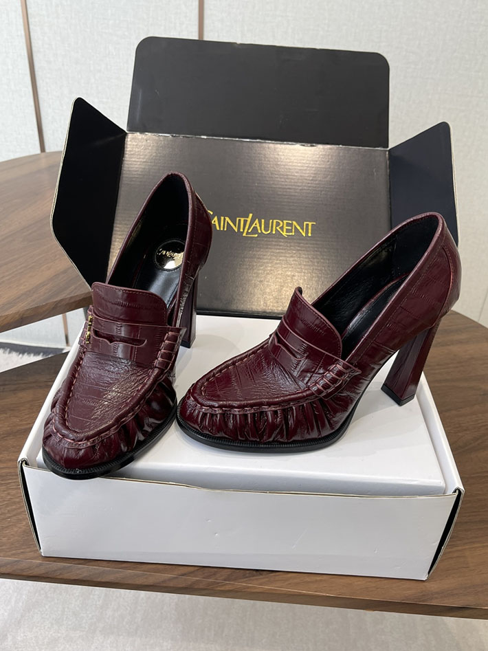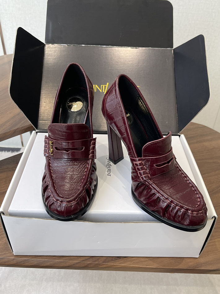 最高級サンローランスーパーコピー Saint Laurent 10cm ル ローファー パンプス イールスキン 2628448 ヒール ローファー ハイブランド
