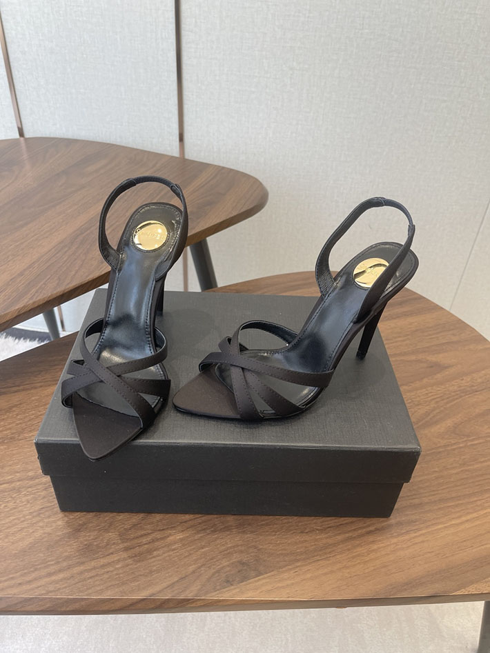 最高級サンローランスーパーコピー Saint Laurent シャンデル サンダル サテンクレープ ブラック 2630573 サン ローラン 靴 レディース