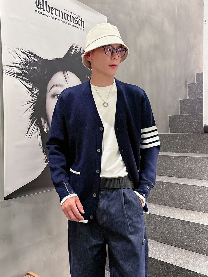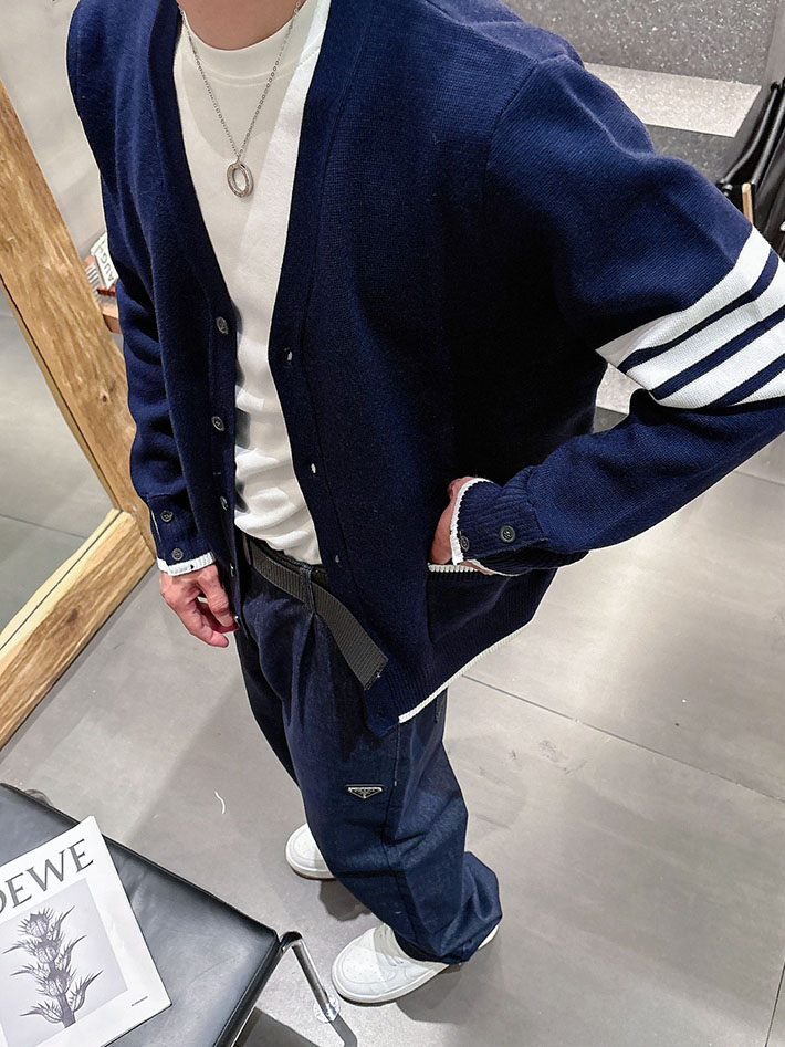 最高級トムブラウンスーパーコピー トムブラウンセーターコピー セーター Vネック ネイビー 2524628 トムブラウン 芸能人