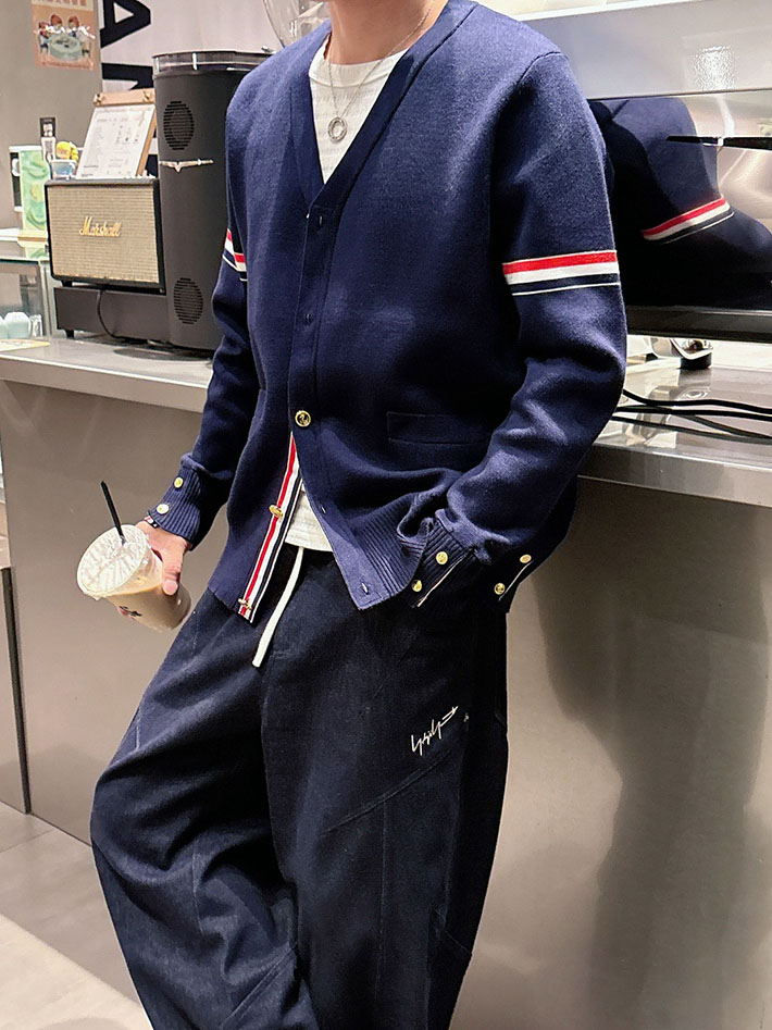 最高級トムブラウンスーパーコピー 無地 保温 軽量 春秋冬 セーター Vネック ネイビー 2524631 トムブラウン アウトレット 価格