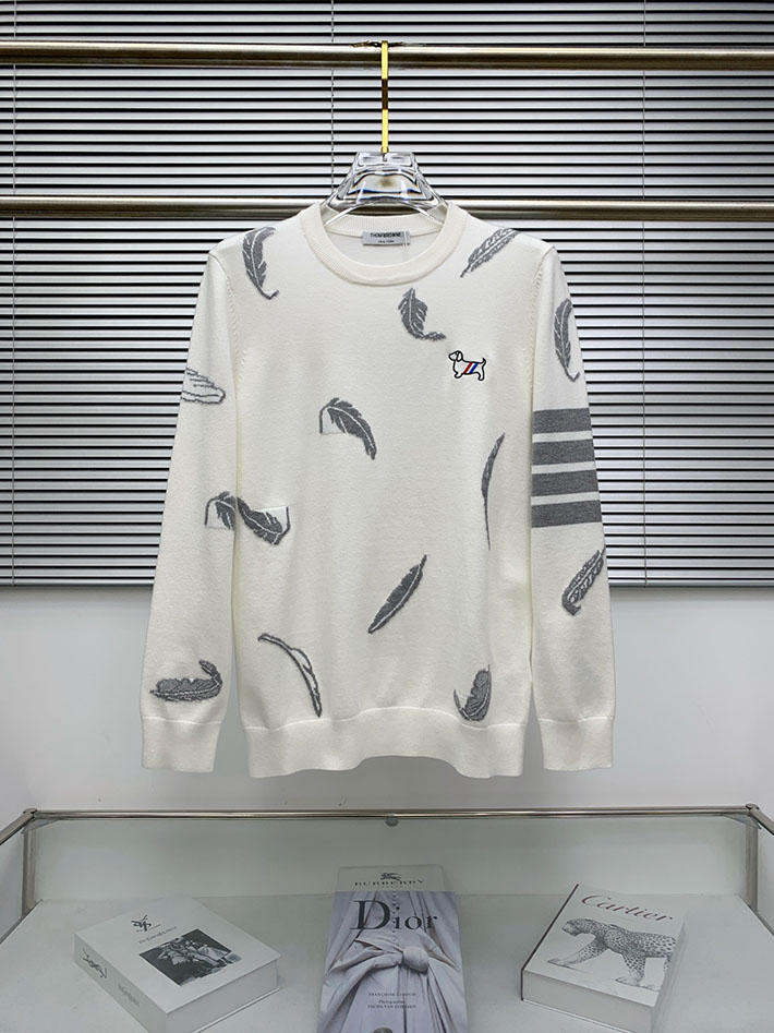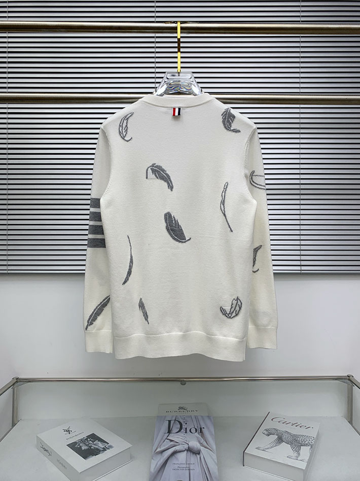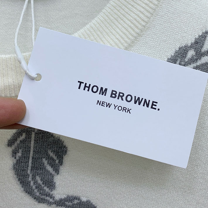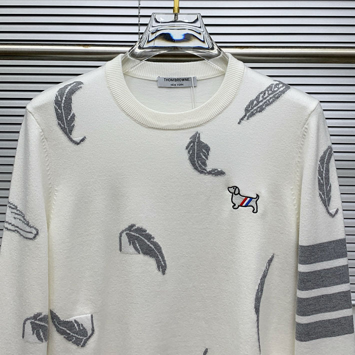 トム・ブラウン フェザー インターシャ リラックスフィット クルーネック プルオーバー ホワイト 2524715 トムブラウン ニット