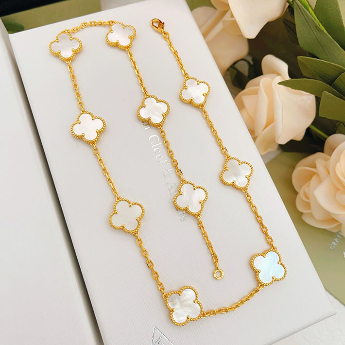 最高級ヴァンクリーフスーパーコピー ヴィンテージ アルハンブラ ネックレス、10モチーフ ゴールド クリスタル 2628775 ヴァンクリーフ 白蝶貝 ネックレス