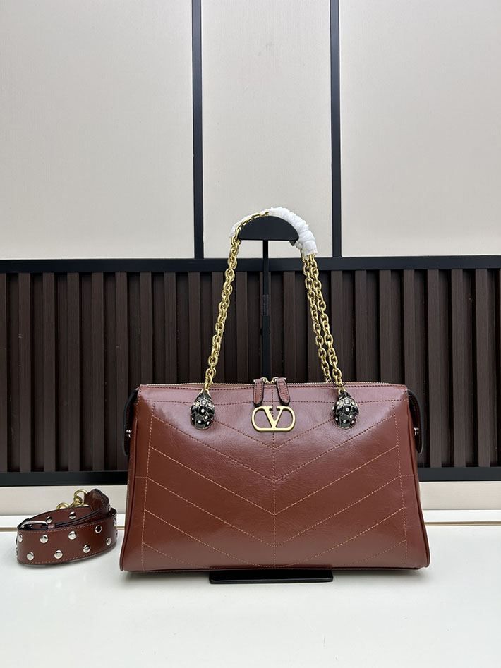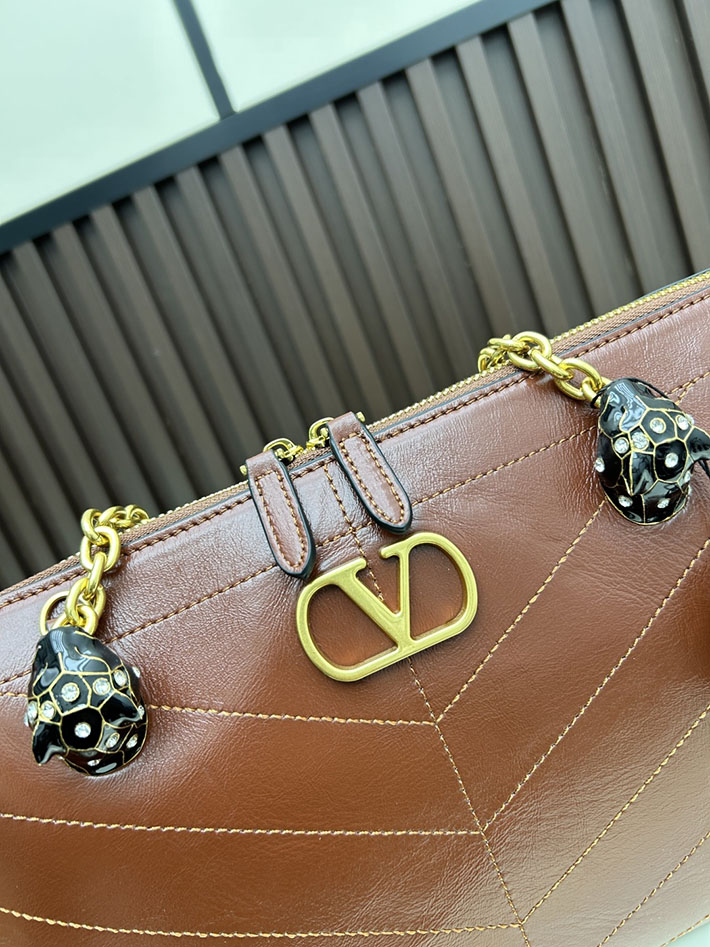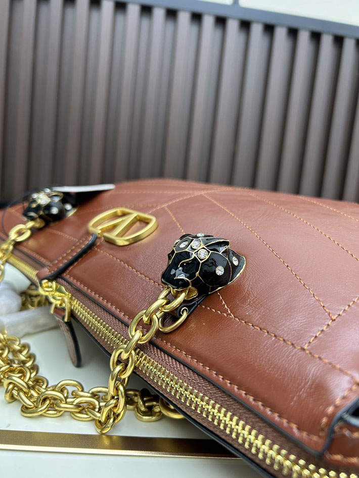 ヴァレンティノ バッグ 人気 VALENTINO ガラヴァーニ パンテア シェブロンパターン ナッパレザー ブラウン 2629207 ヴァレンティノ ショルダーバッグ