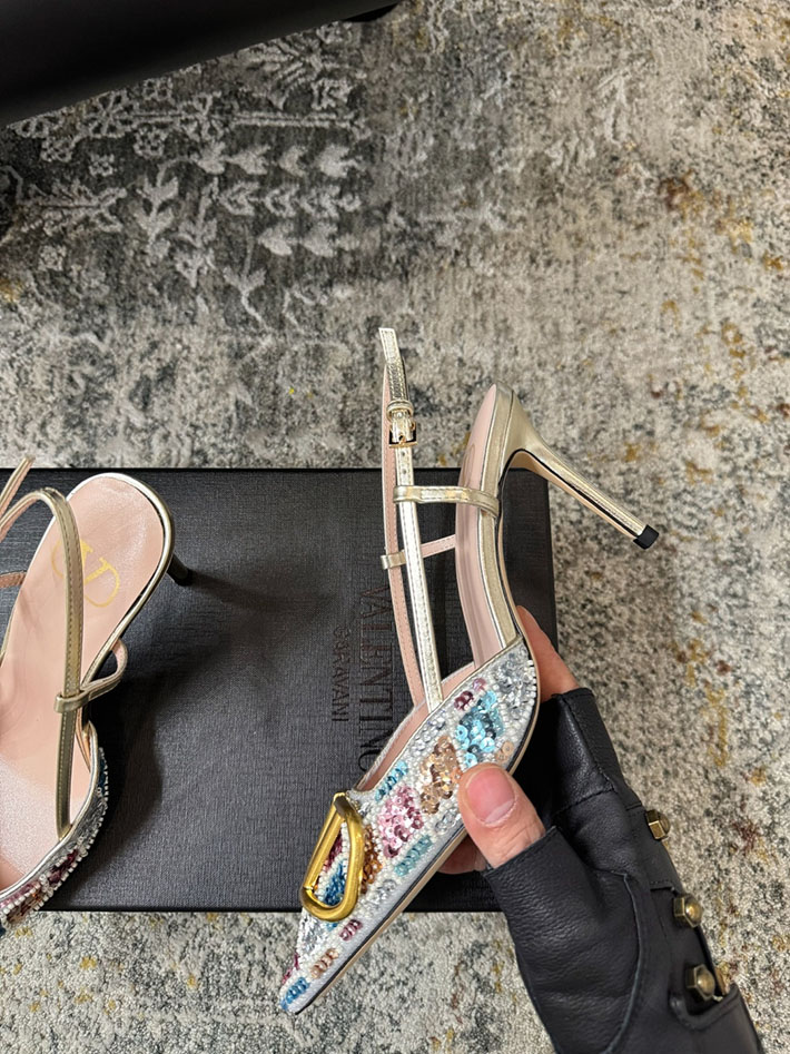 ヴァレンティノ VALENTINO Vロゴ シグネチャー ロンベール エンブロイダリー スリングバックパンプス 2628201 ヴァレンティノ パンプス セール