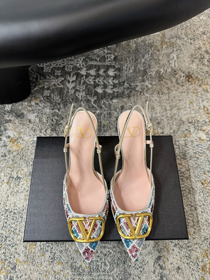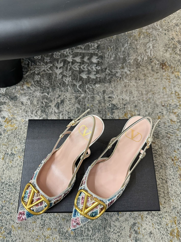 商品名:Vロゴ シグネチャー ロンベール エンブロイダリー スリングバックパンプス