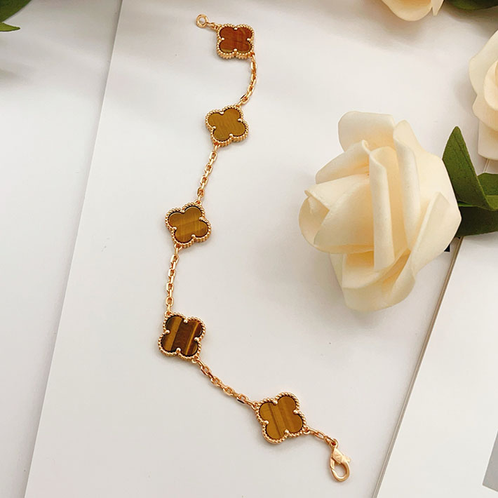 最高級ヴァンクリーフスーパーコピー ヴィンテージ アルハンブラ ブレスレット 5P ローズゴールド タイガーズアイ 2628838 ヴァンクリーフ タイガーズアイ ブレスレット