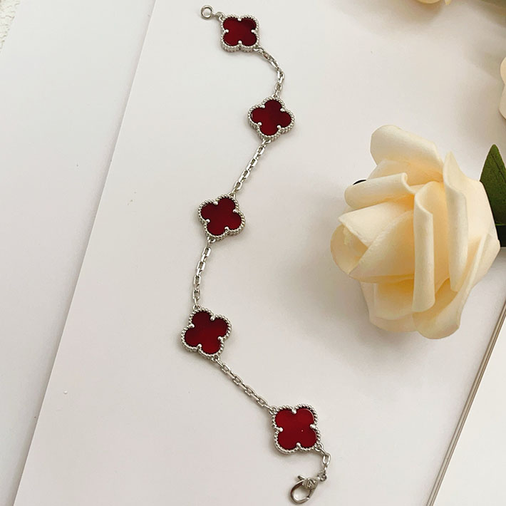 最高級ヴァンクリーフスーパーコピー ヴィンテージ アルハンブラ ブレスレット 5P ホワイトゴールド カーネリアン 2628845 ヴァンクリーフ風 ブレスレット