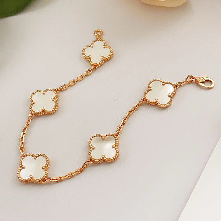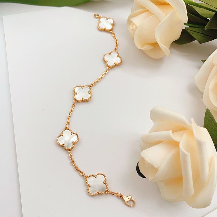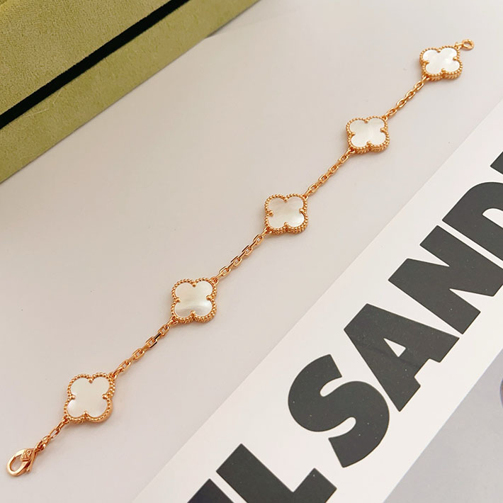 最高級ヴァンクリーフスーパーコピー ヴィンテージ アルハンブラ ブレスレット 5P ローズゴールド マザー オブ パール 2628850 ヴァンクリ 白蝶貝 アルハンブラ