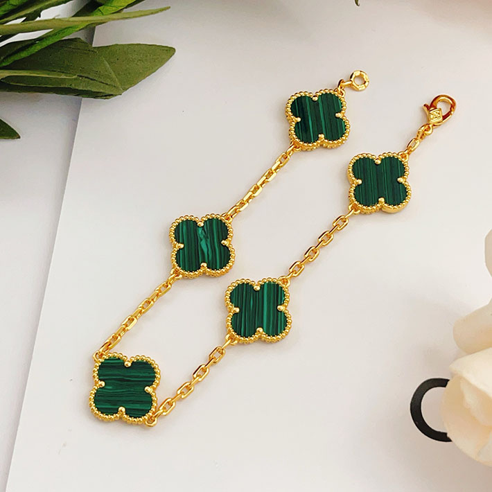 最高級ヴァンクリーフスーパーコピー ヴィンテージ アルハンブラ ブレスレット 5P ゴールド マラカイト VCARL80900 ヴァンクリーフ マラカイト ブレスレット