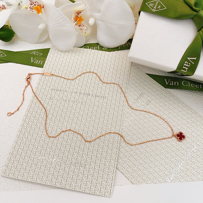 最高級ヴァンクリーフスーパーコピー ローズゴールド レッド スウィートアルハンブラ ネックレス カーネリアン 2628668 ヴァンクリーフ ネックレス 赤