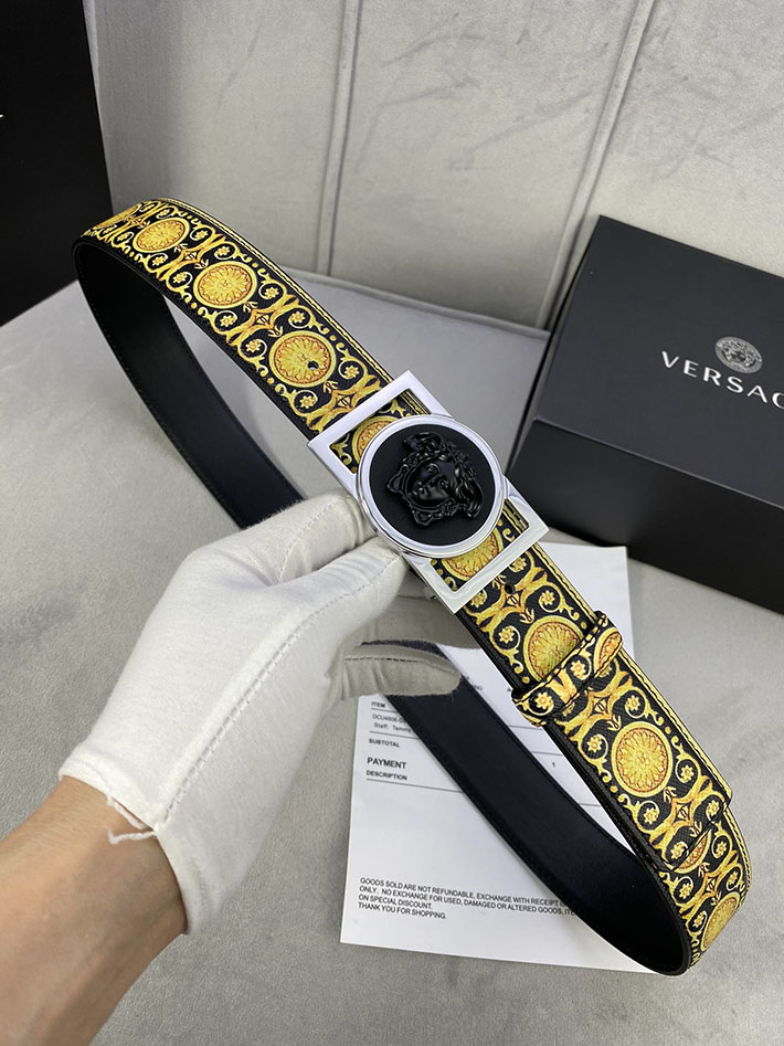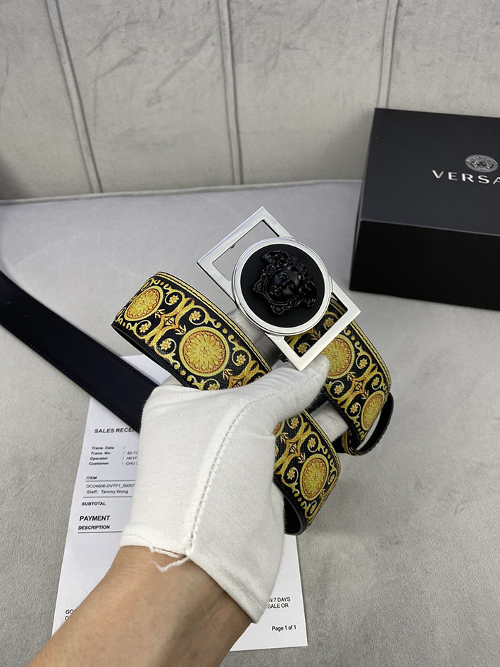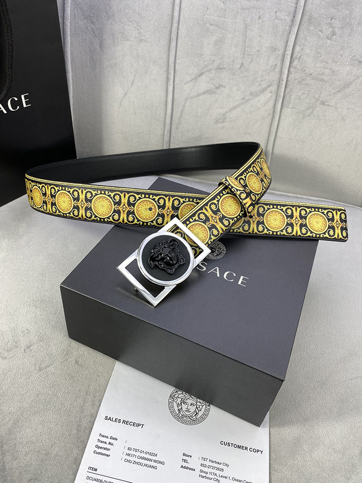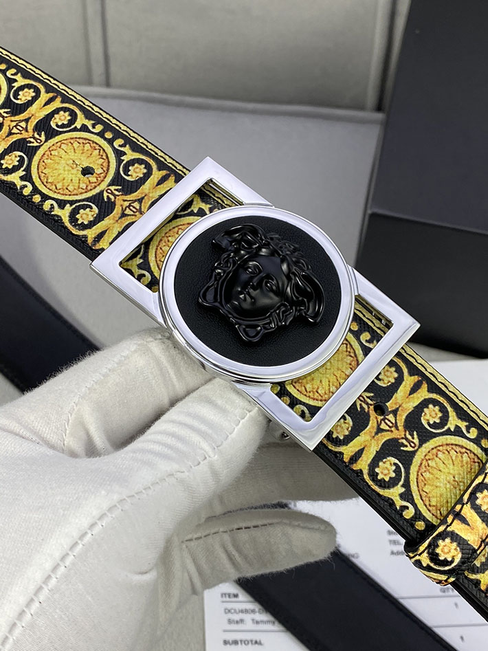 最高級ヴェルサーチェスーパーコピー ヴェルサーチェベルトコピー ブラック 40MM シルバー金具 2518835 ベルト メンズ おしゃれ ブランド