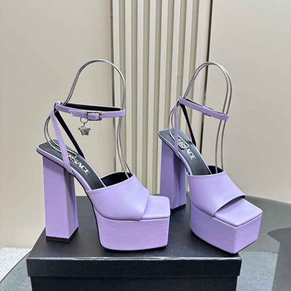 最高級ヴェルサーチェスーパーコピー ヴェルサーチェサンダルコピー 厚底ヒール 2518797 バイオレット ヒール サンダル 歩きやすい ブランド