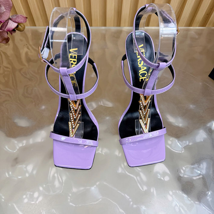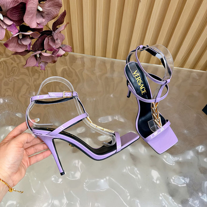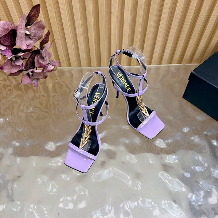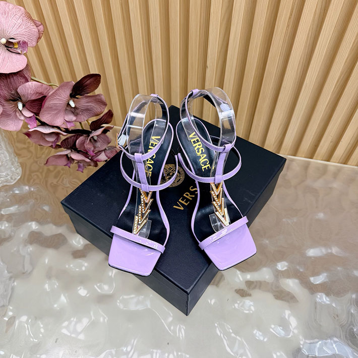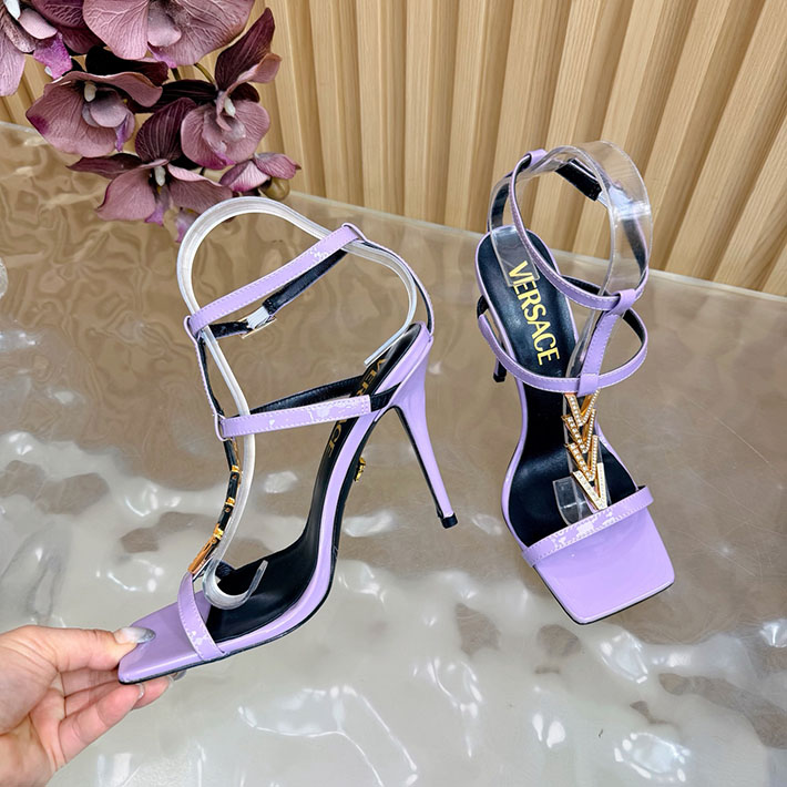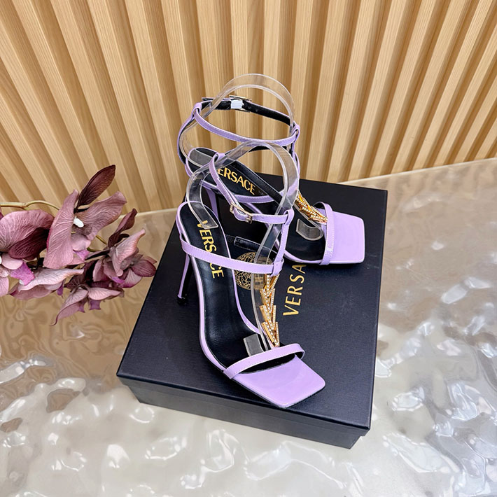 最高級ヴェルサーチェスーパーコピー VERSACE V2025 105mm チェーン サンダル カーフレザー 2628228 サンダル レディース 人気ブランド