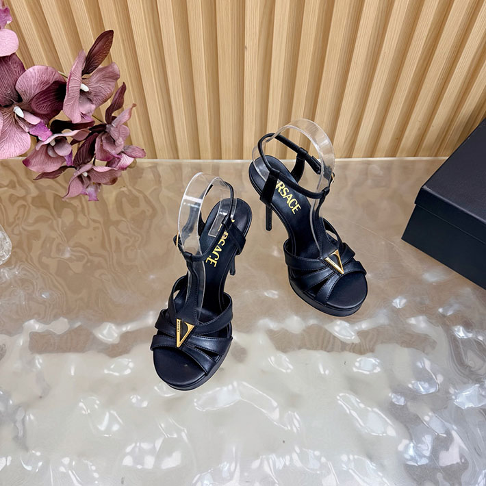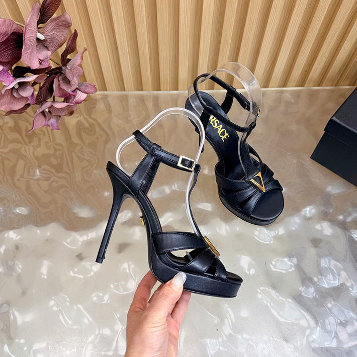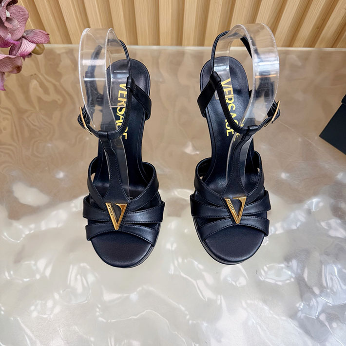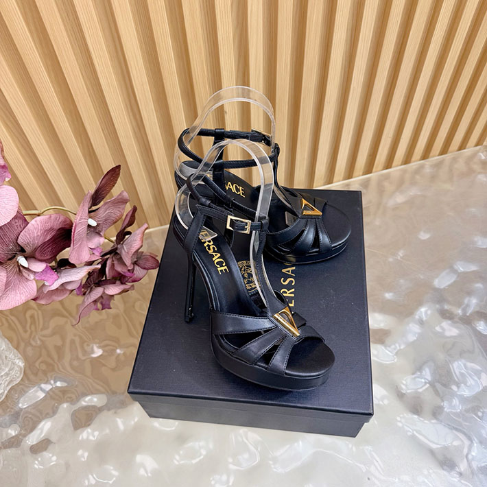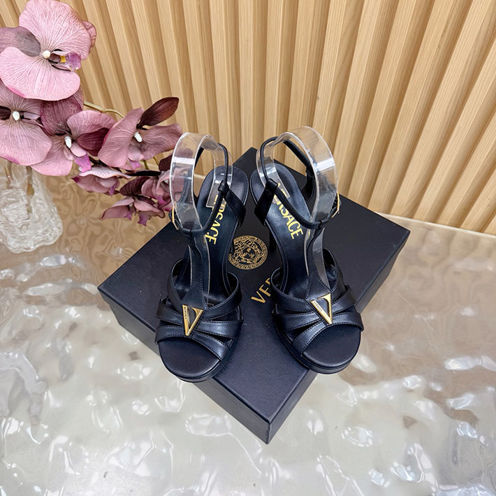 最高級ヴェルサーチェスーパーコピー VERSACE レターV レザーサンダル 120 mm 2628235 ヴェルサーチ サンダル レディース