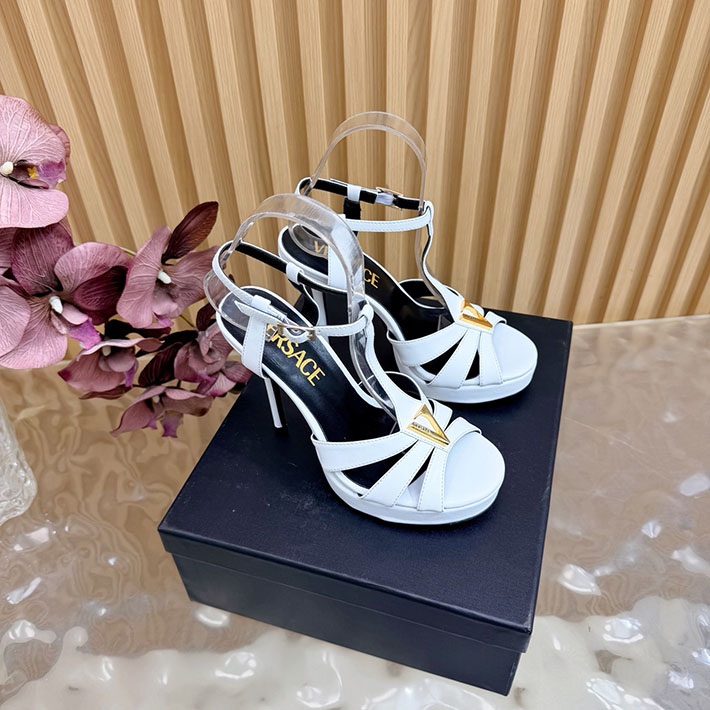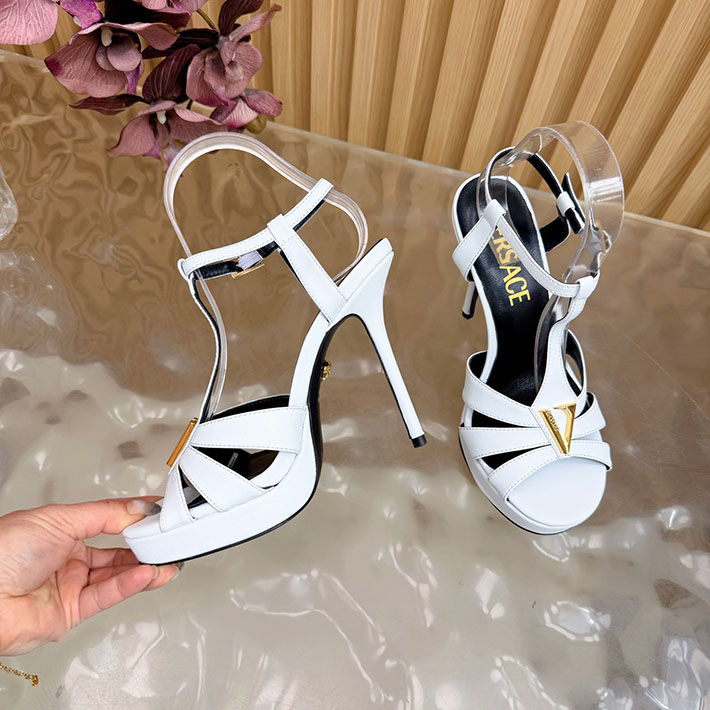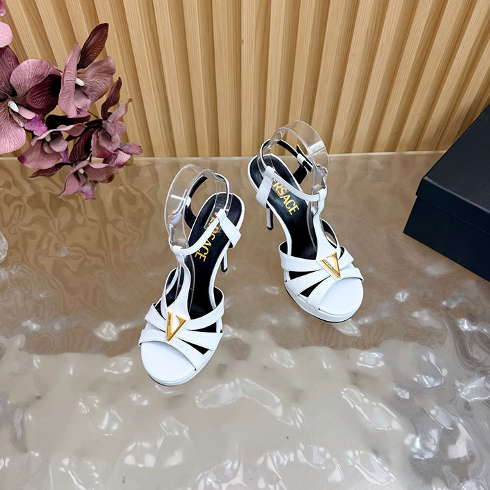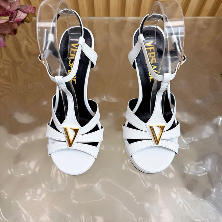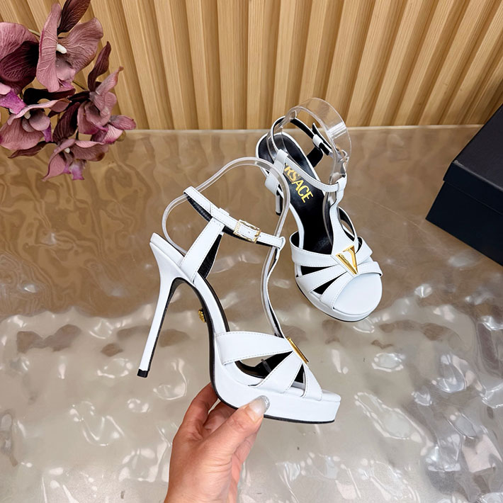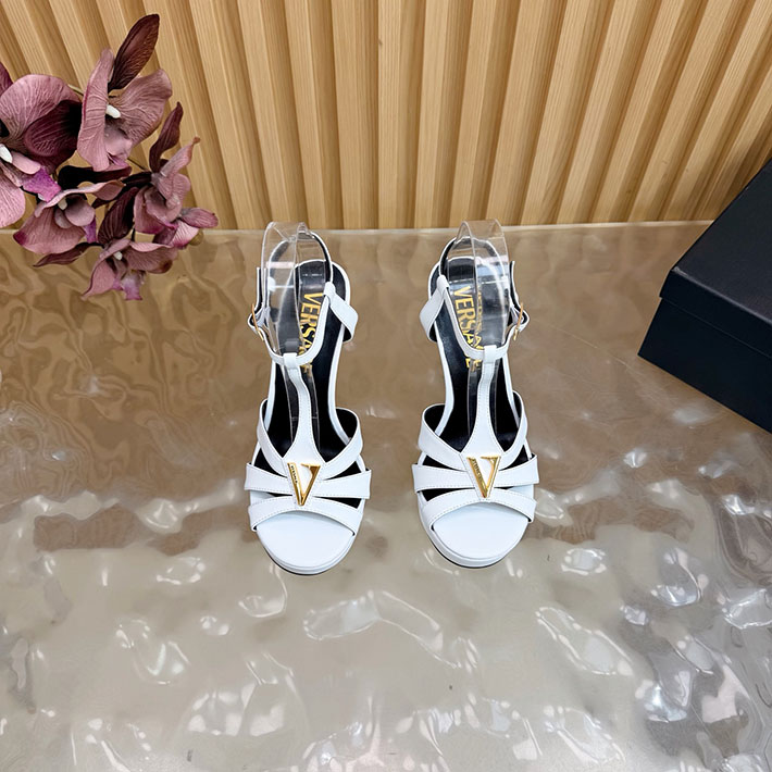最高級ヴェルサーチェスーパーコピー VERSACE レターV レザーサンダル 120 mm 2628236 ヴェルサーチ 靴 レディース