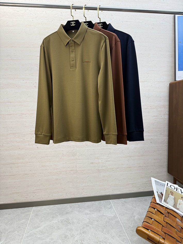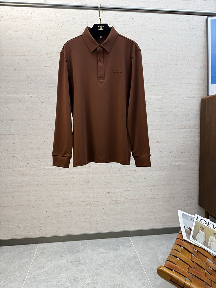 最高級ゼニアスーパーコピー ZEGNA ポロシャツ 長袖 メンズ 綿100 ブラウン 2525691 ゼニア ポロシャツ 長袖